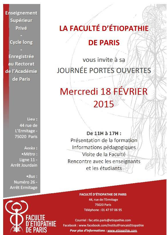 Pour découvrir l’étiopathie et le métier d’étiopathe, la faculté d’étiopathie de Paris vous propose une journée porte ouverte. Cette événement sera l’occasion pour les personnes intéressés d’échanger avec des élèves en cours de formation et des praticiens installés en libéral.