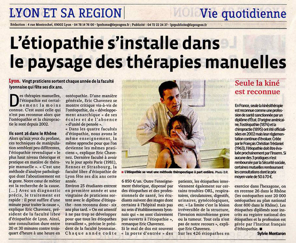 Un excellent article sur l’étiopathie vient de paraitre dans le journal « Le progrès ». Sont abordés les thèmes en lien avec la formation des futurs praticiens, en particulier le nombre d’étudiants sélectionnés en début de cursus et ceux obtenant finalement leur diplôme au terme de six années d’études denses, associant un socle de connaissances théoriques solides et une pratique quotidienne exigeante.